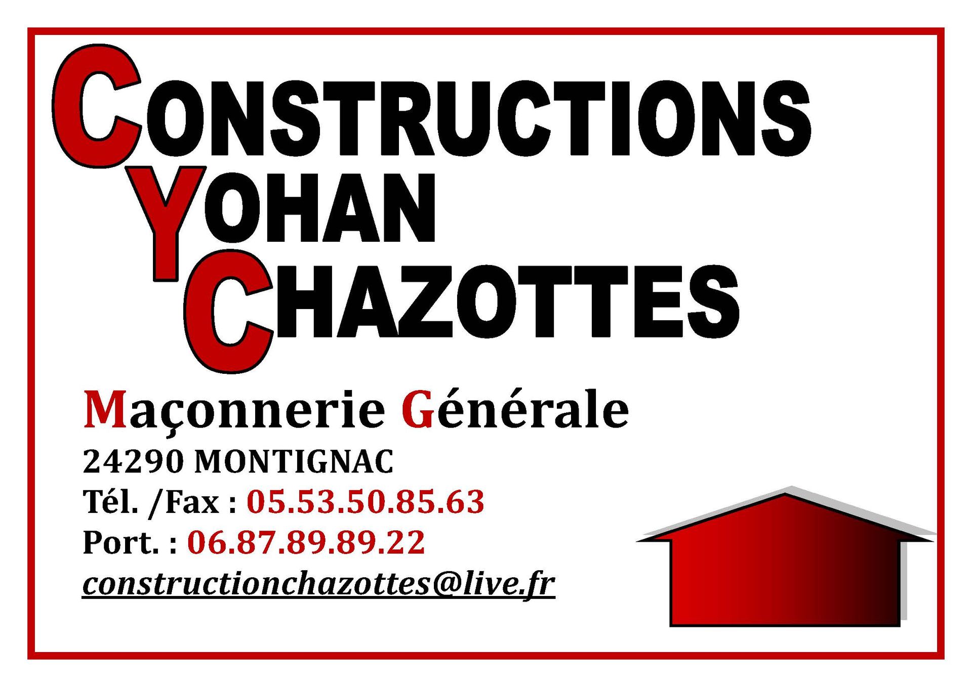 Mentions légales de l'entreprise Constructions Yohan Chazottes située 10 avenue de la Gare 24290 MONTIGNAC-LASCAUX